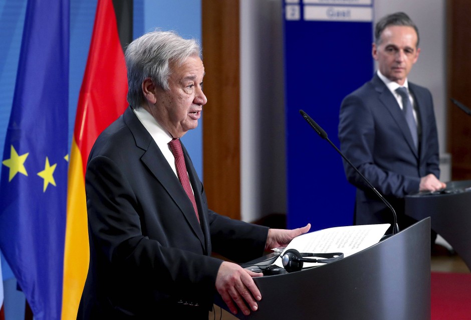 △古特雷斯(左)和马斯在记者会上(图片来源:德新社)