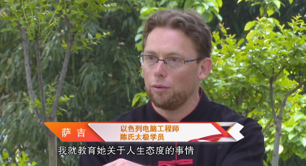 以色列电脑工程师 陈氏太极学员 萨吉:在这里有些事情很令人惊讶,我的妻子和女儿也这样想。在这里,所有的人都有着深邃的眼神,这是因为他们练习太极不仅身体好,而且心地善良。所以在我女儿小的时候,我就教育她关于人生态度的事情:一定要去努力学习工作,成为一个品性纯良的人。