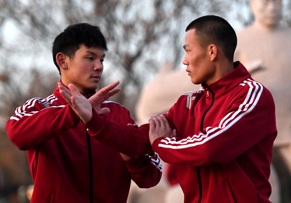 陈家沟太极拳祖祠内,一家太极拳学校的学员在练拳。新华社记者李安摄