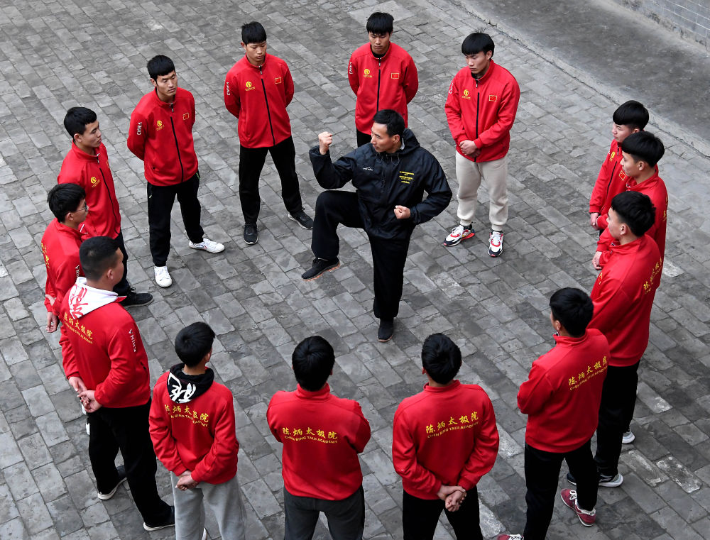 在河南省焦作市温县陈家沟一个拳馆内,拳师在指导学员练拳。新华社记者 李安摄