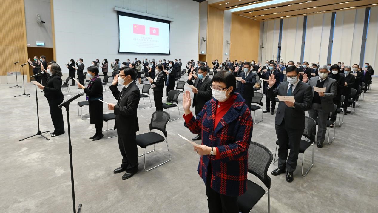 在公务员事务局常任秘书长杨何蓓茵带领下,常任秘书长、部门首长和其他高级首长级公务员宣誓拥护《中华人民共和国香港特别行政区基本法》、效忠中华人民共和国香港特别行政区、尽忠职守和对特区政府负责。