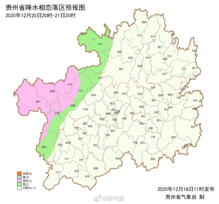 20日夜间到21日白天,贵州省的西北部地区阴天夜间有零星小雨,地势高处有零星冻雨或雨夹雪,其余地区多云到晴,贵州省的东部地区夜间到早晨局地有霜,全省大部气温继续回升。(总台央视记者 杨晓东)