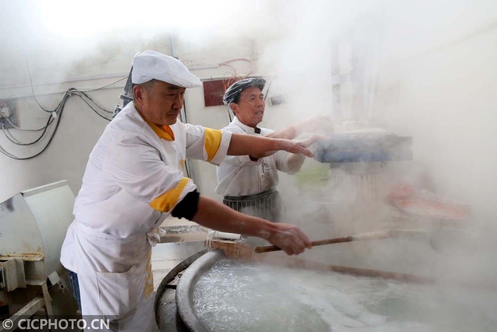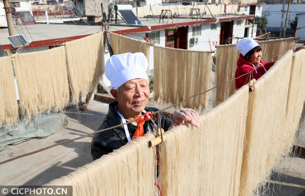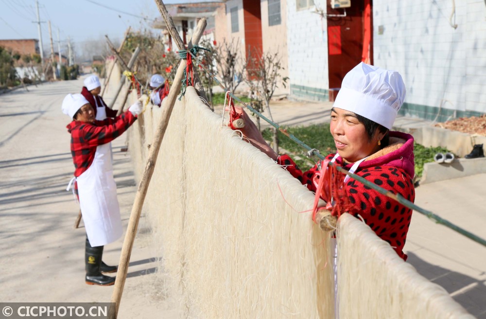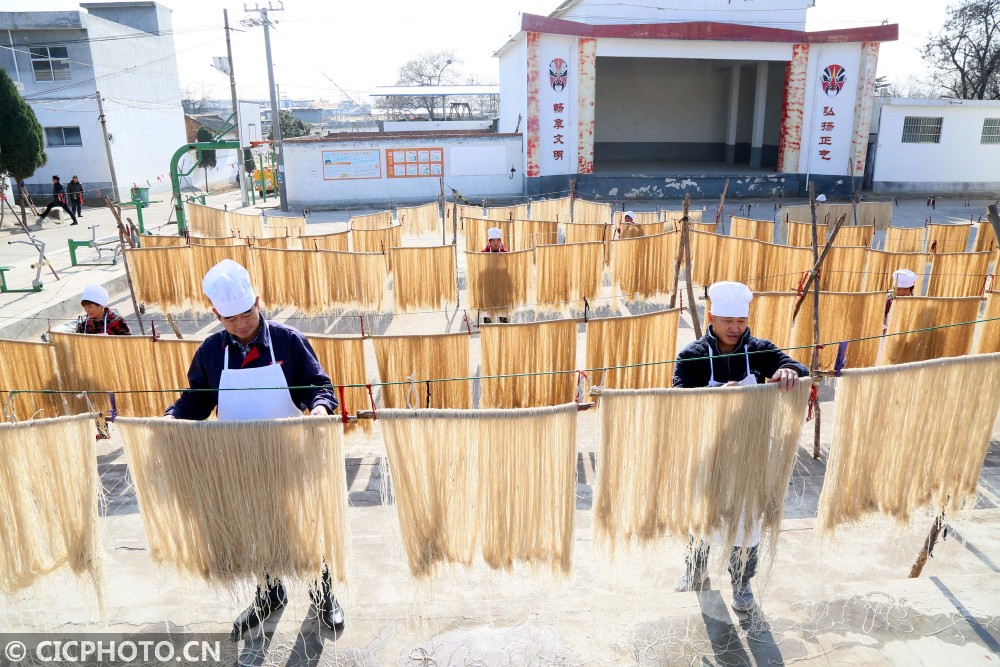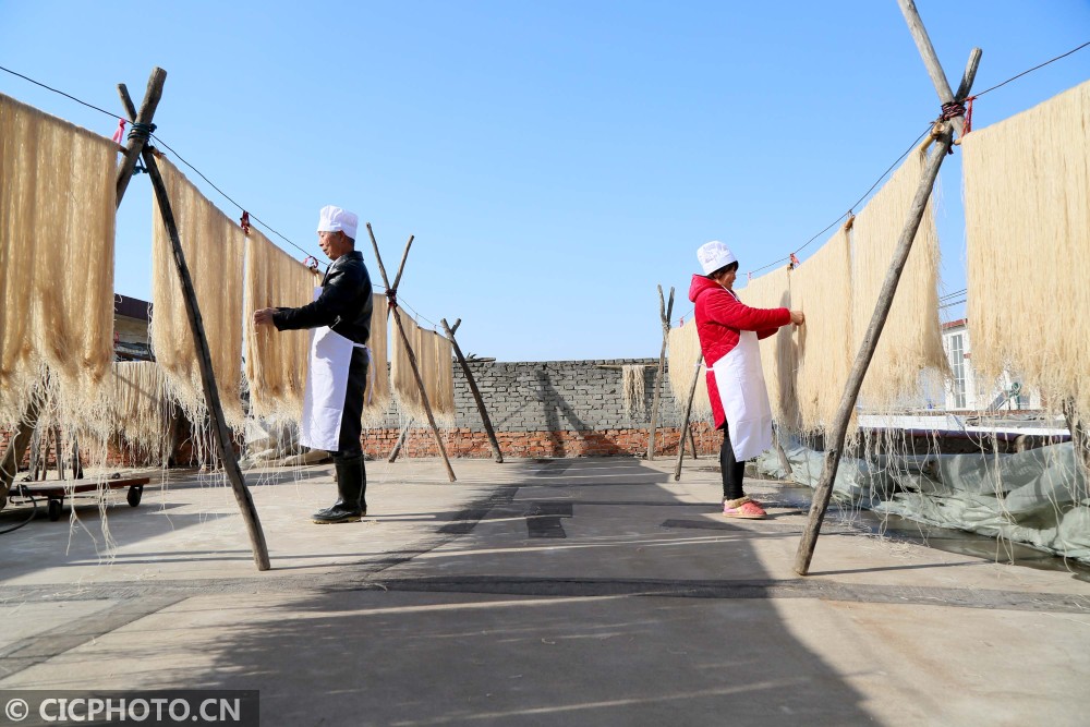 以上图片:2020年12月15日,在河南省汝阳县内埠镇罗洼村,该村粉条加工户在加工、晾晒粉条。CICPHOTO/康红军 摄