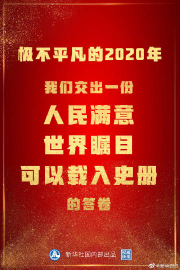 【#权威快报#|#2020中国答卷#】中央经济工作会议12月16日至18日在北京举行。这次会议认为,今年是新中国历史上极不平凡的一年。面对严峻复杂的国际形势、艰巨繁重的国内改革发展稳定任务特别是新冠肺炎疫情的严重冲击,我们保持战略定力,准确判断形势,精心谋划部署,果断采取行动,付出艰苦努力,交出了一份人民满意、世界瞩目、可以载入史册的答卷。(邹多为、刘文昕 海报设计:苗夏阳)