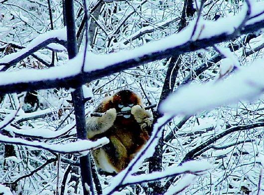 李保国和同伴们穿着登山鞋,踩着积雪,拄着树枝,开始寻找那些“抱团取暖”的金丝猴群。