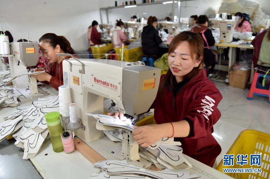 12月18日,工人在河北省邢台市南和区郝桥镇梁庄村一家制鞋企业工作。