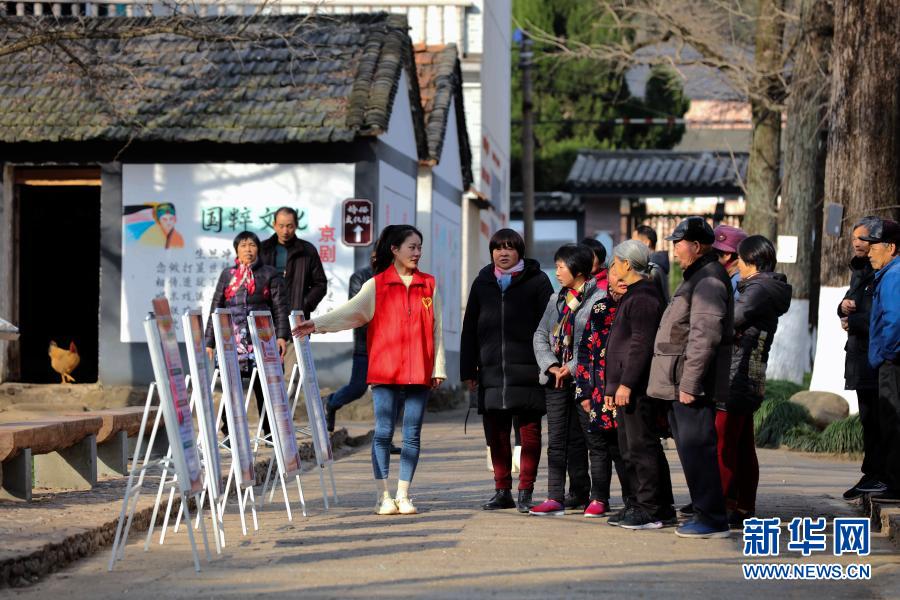 12月18日,长兴县小浦镇乡贤代表在当地的京剧老年活动中心给老人们宣讲十九届五中全会精神。