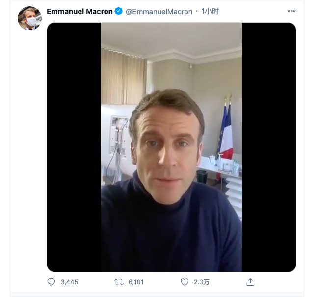 法国总统马克龙当地时间18日下午在其社交媒体账户上发布了一段自拍视频,他表示自己目前情况良好,同时敦促法国民众遵守防疫措施。