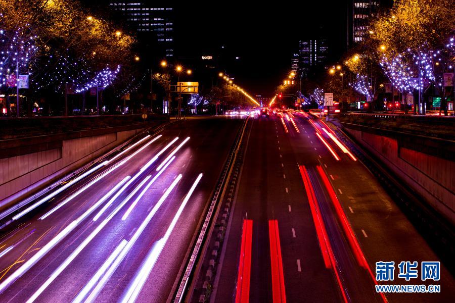 这是12月17日在西班牙马德里卡斯蒂利亚大道拍摄的街景。圣诞将至,西班牙马德里街头的圣诞灯饰为城市增添了节日气息。新华社发(爱德华·皮特斯 摄)