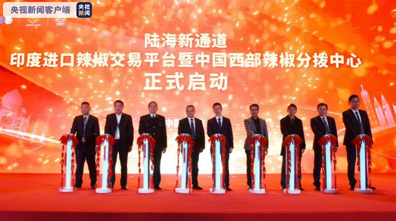 12月18日,陆海新通道印度进口辣椒交易平台暨中国西部辣椒分拨中心在重庆正式启动。全国各地餐饮、食品加工、贸易及个体商户等近160家客商,还有近10家航运公司和14家金融机构前来参与,现场与12家企业签订订货合同,达成销售意向8000吨,销售额达2亿元。项目落成后预计年交易印度辣椒5万吨,交易规模近10亿元,可有效对接西部地区庞大的餐饮和食品加工行业需求。