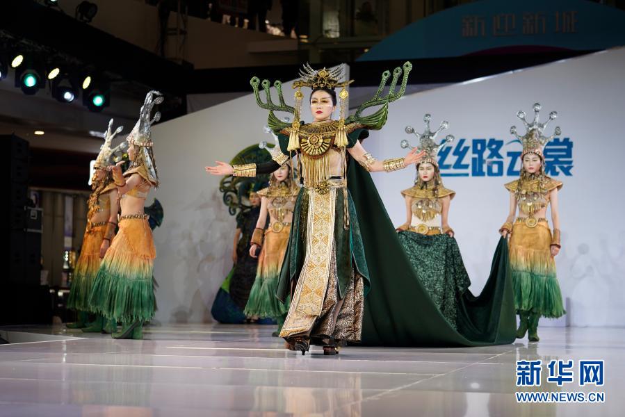 12月18日,在昆明市新迎新城购物中心,模特在民族时装秀上进行展示。12月18日晚,“丝路云裳·云上昆明”民族时装周在昆明市新迎新城购物中心和公园1903同时拉开帷幕。在接下来的5天时间里将陆续举行民族服饰、国际时尚、独立设计师、高校设计等40余场时装发布秀。新华社记者 陈欣波 摄