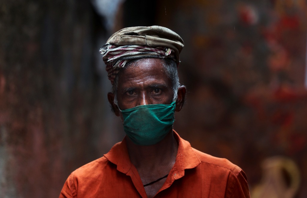 2月14日,在印度孟买,一名男子戴口罩出行。新华社/美联