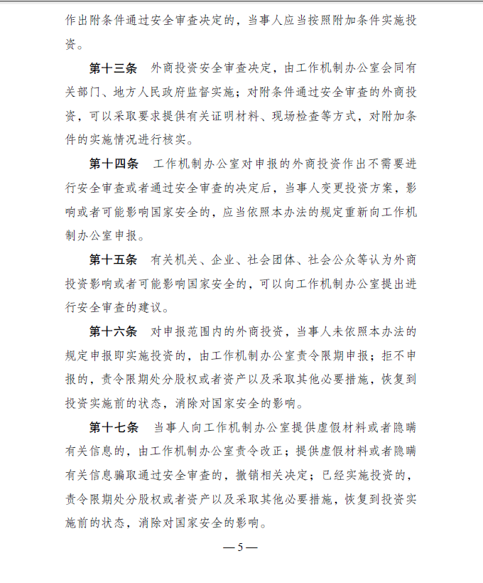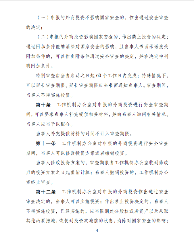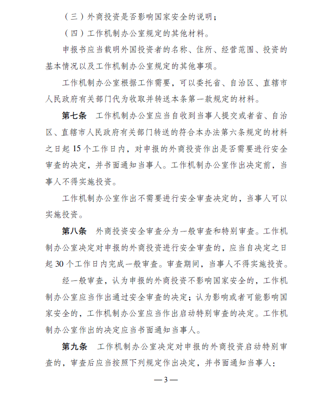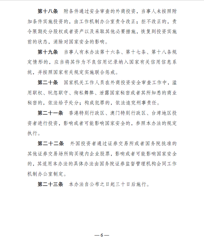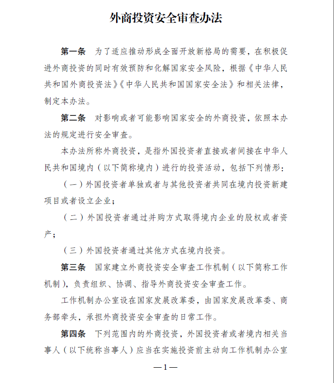 新京报快讯 据发改委网站消息,《外商投资安全审查办法》已经2020年11月27日国家发展和改革委员会第13次委务会议审议通过,并经国务院批准,现予公布,自2021年1月18日起施行。