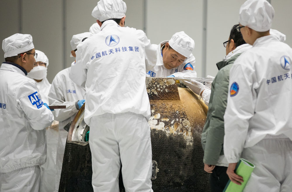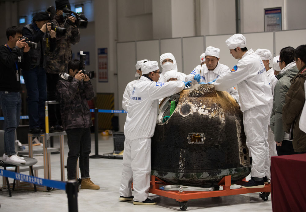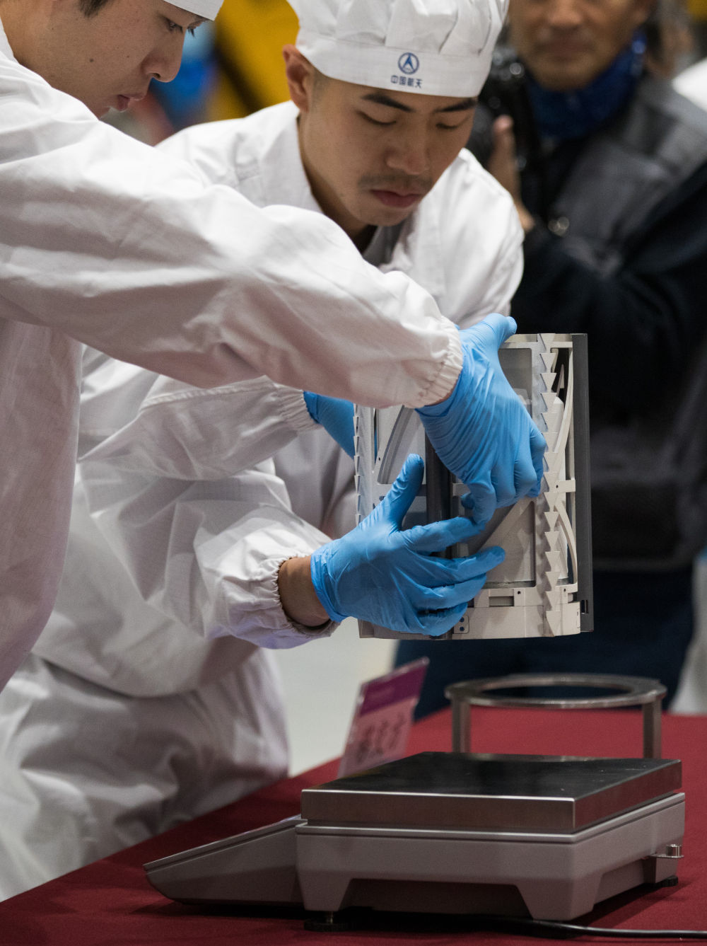 12月17日,科研人员给嫦娥五号返回器穿上防护衣。
