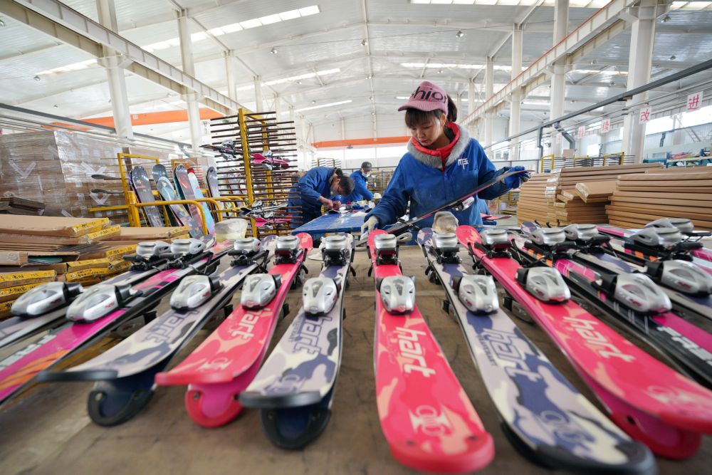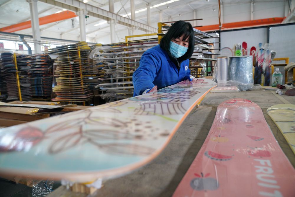 周文寿告诉记者,以前工厂在浙江时每年生产18万套滑雪板,全部出口海外。来张家口后年产能达20万套。