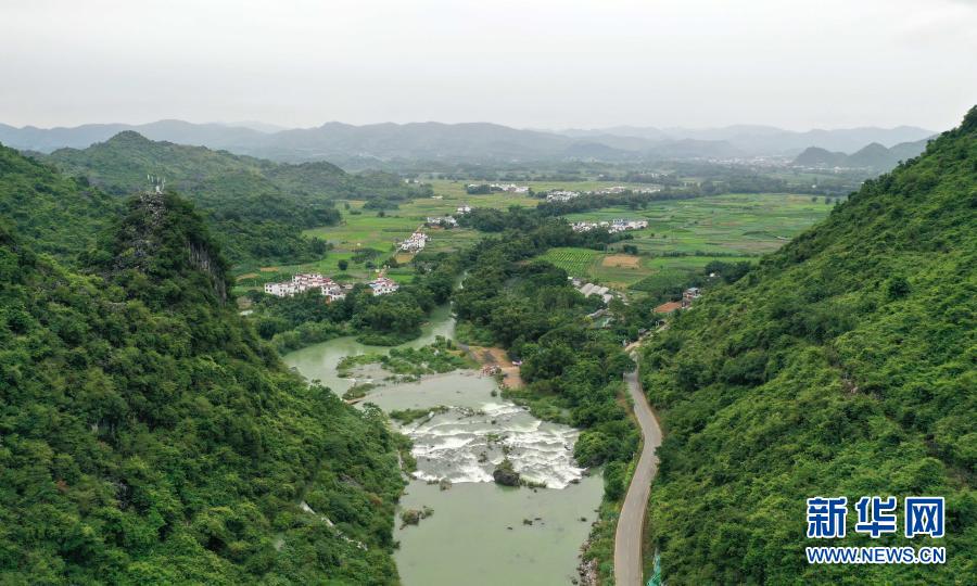 这是广西鹿寨县中渡镇大兆村新貌(9月27日摄,无人机照片)。