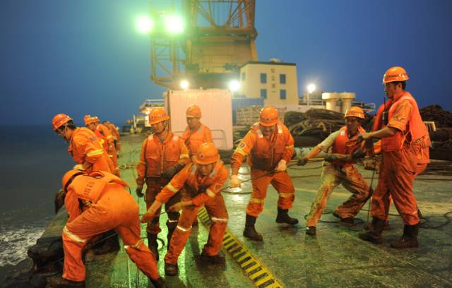 △ 正在打捞“世越号”客轮的上海打捞局团队