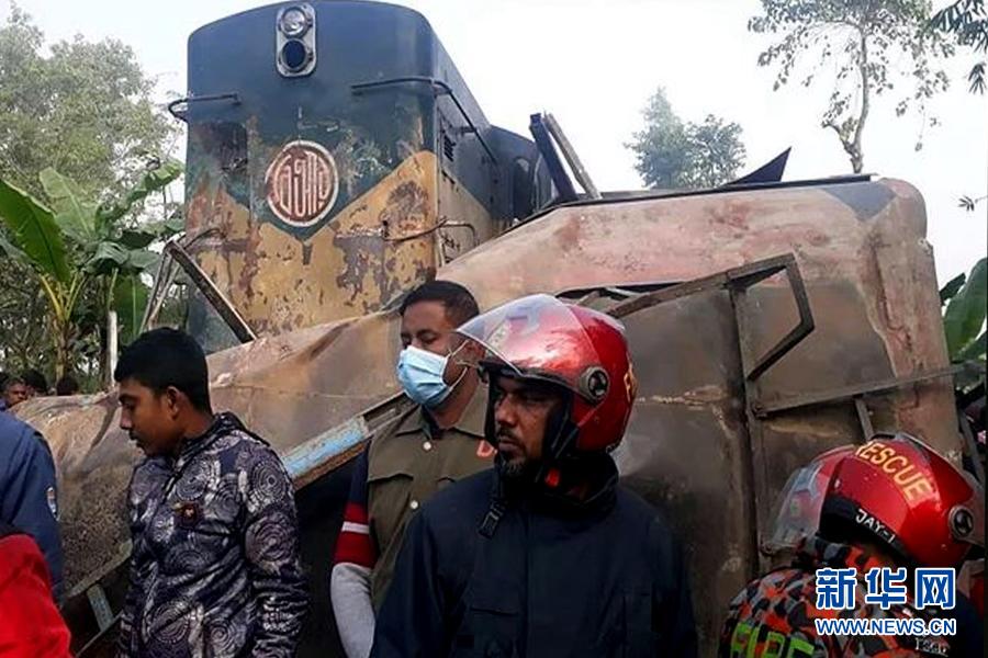 12月19日,孟加拉国西北部地区19日早上发生一起火车与客车相撞事故,事故导致12人死亡,另有数人受伤。新华社发(萨利姆摄)