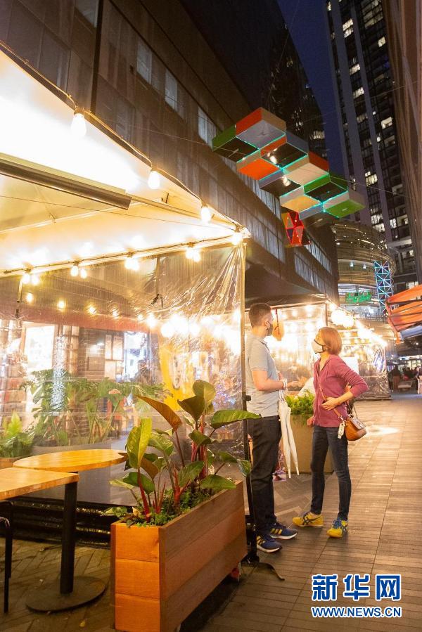 12月19日,在澳大利亚悉尼,戴着口罩的市民在露天就餐区等待就坐。