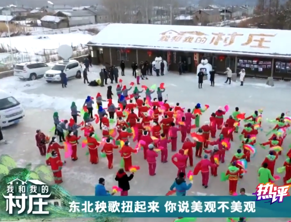 一片白雪皑皑中,红衣村民们手中的红色扇子,伴着大秧歌舞动的节奏,仿佛一团团红色的火焰上下跳动,像极了小南河村村民们点燃的为幸福生活奋斗的精神火种。