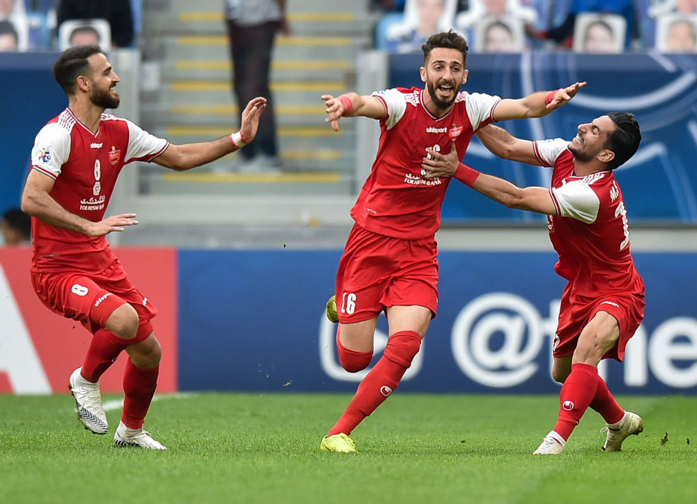 12月19日,波斯波利斯队球员阿卜迪(中)在比赛中庆祝进球。新华社发(尼库 摄)