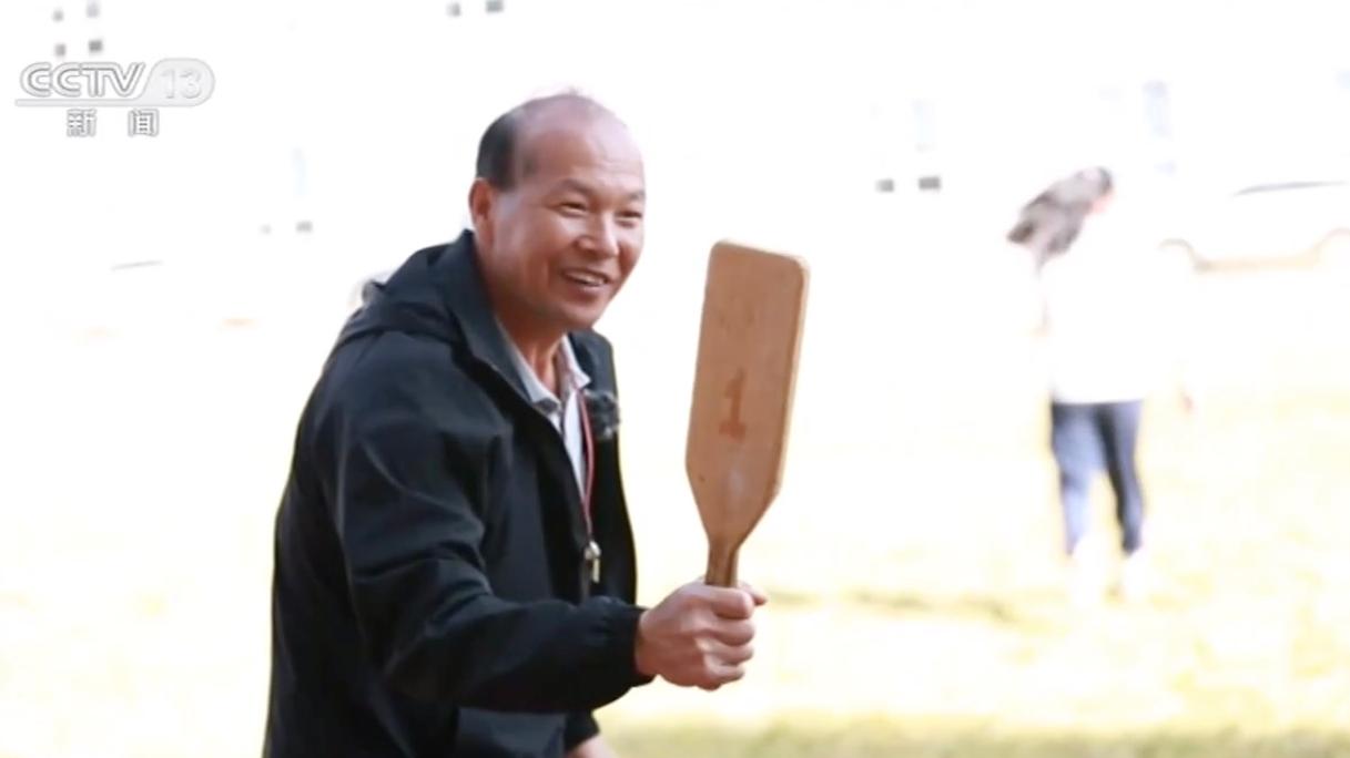 昆明市官渡区白汉场中心学校体育教师 毕首金:我们学校的板鞋,(重量)一只有30公斤,一双就是60公斤。16个人一穿上,走起来地动山摇的感觉,声音夸夸夸夸……