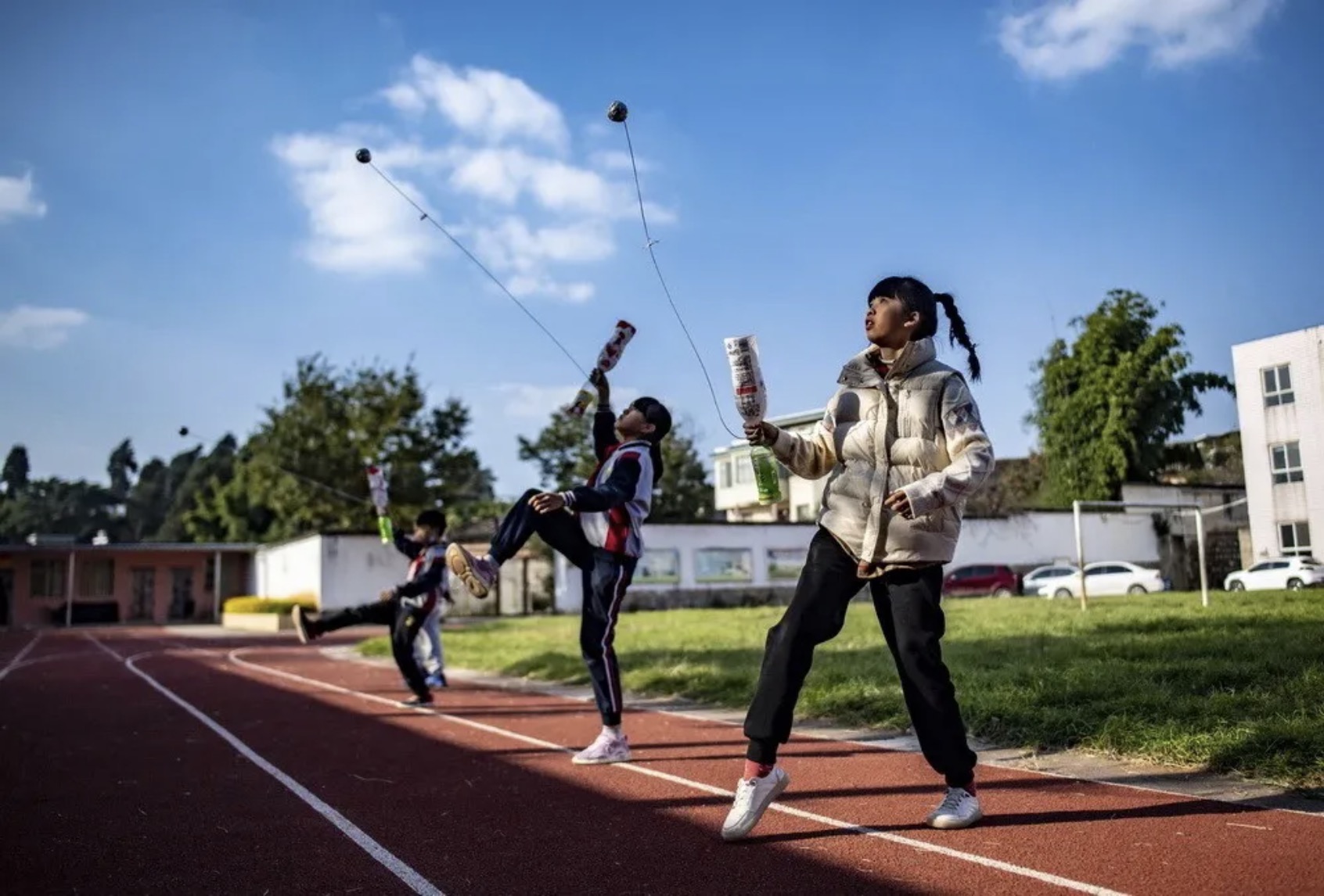 昆明市官渡区白汉场中心学校体育教师 毕首金:它绝对是一个创新,因为小弹弓它锻炼的是手臂的力量,我们大弹弓像拔河一样,整个全身各个部位的力量都要用上。