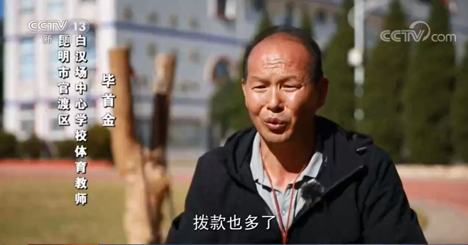 昆明市官渡区白汉场中心学校体育教师 毕首金:现在条件好了,拨款也多了,特别是标准器材,完全是满足了。(但是)有自己特色的器材,在我们大课间过程中,一节课都是排着队的。因为学生喜爱,我就一直坚持下来了。