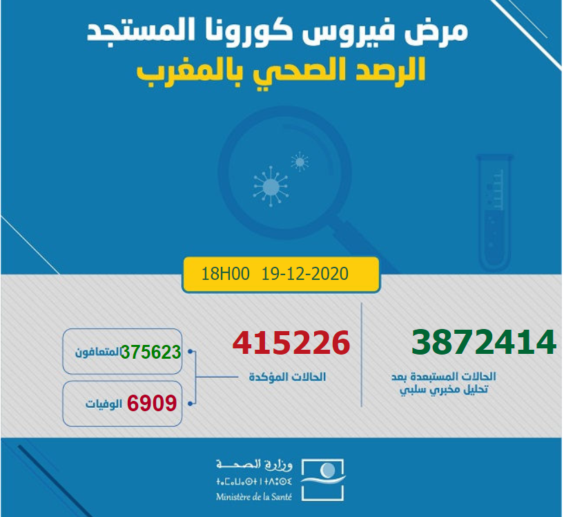 摩洛哥卫生部12月19日证实,该国在过去24小时新增2833例新冠肺炎确诊病例、55例死亡及2898例治愈。截至目前,摩洛哥已经累计确诊新冠肺炎病例415226例,死亡6909例,治愈375623例。(总台记者 单既明)