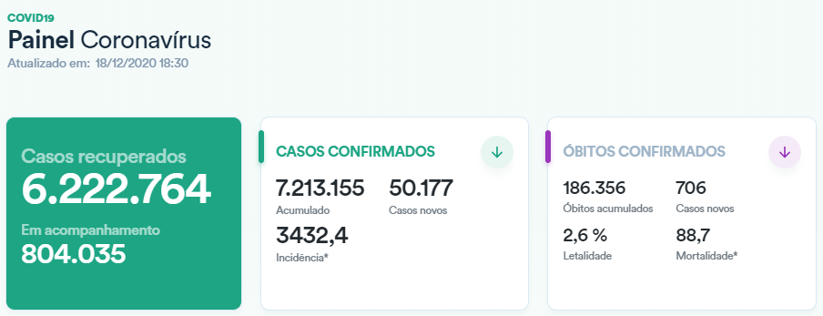 截至当地时间12月19日,根据巴西卫生部发布的数据,巴西新增新冠肺炎确诊病例50177例,累计确诊7213155例;新增死亡病例706例,累计死亡186356例;累计治愈6222764例。(总台记者 谢海天)