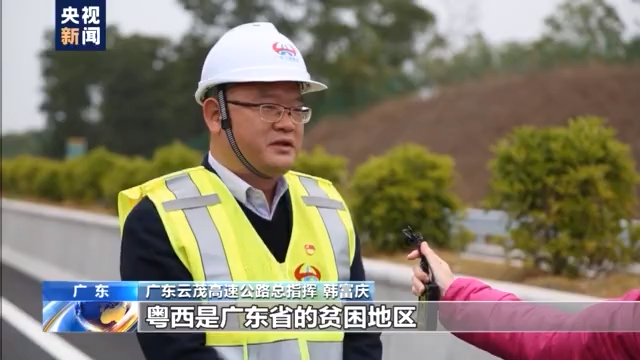 广东云茂高速公路总指挥 韩富庆:粤西是广东省的贫困地区,相对贫困人口超过40万,云茂高速对推动沿线的产业结构调整升级,进一步改善广东省发展不平衡、不充分的现状,可以起到根本性的促进作用。