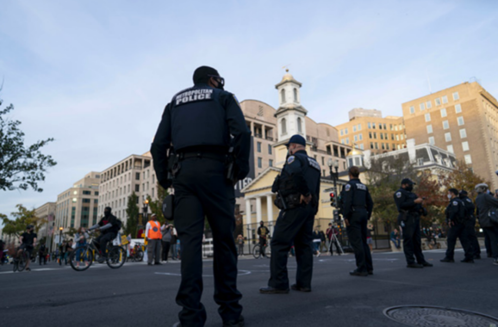 2020年11月5日,警察在美国华盛顿白宫附近警戒。图|新华社