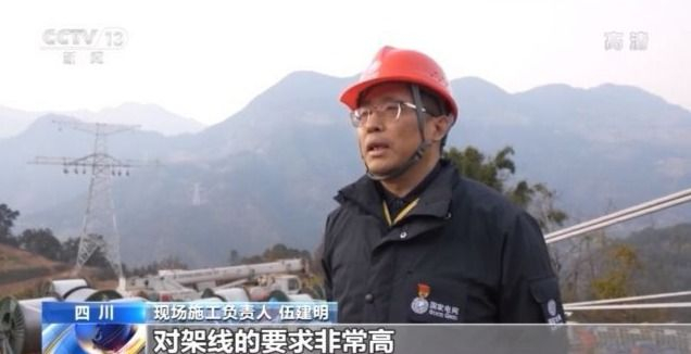 雅中-江西±800千伏特高压直流输电线路川1标段现场施工负责人 伍建明:(线路)最大的落差大概是2000多米,对架线的要求非常高。我们原来在山区用3台张力机,有时候用6台张力机来放线,也是一种新的施工技术,来满足现场的施工安全和质量要求。