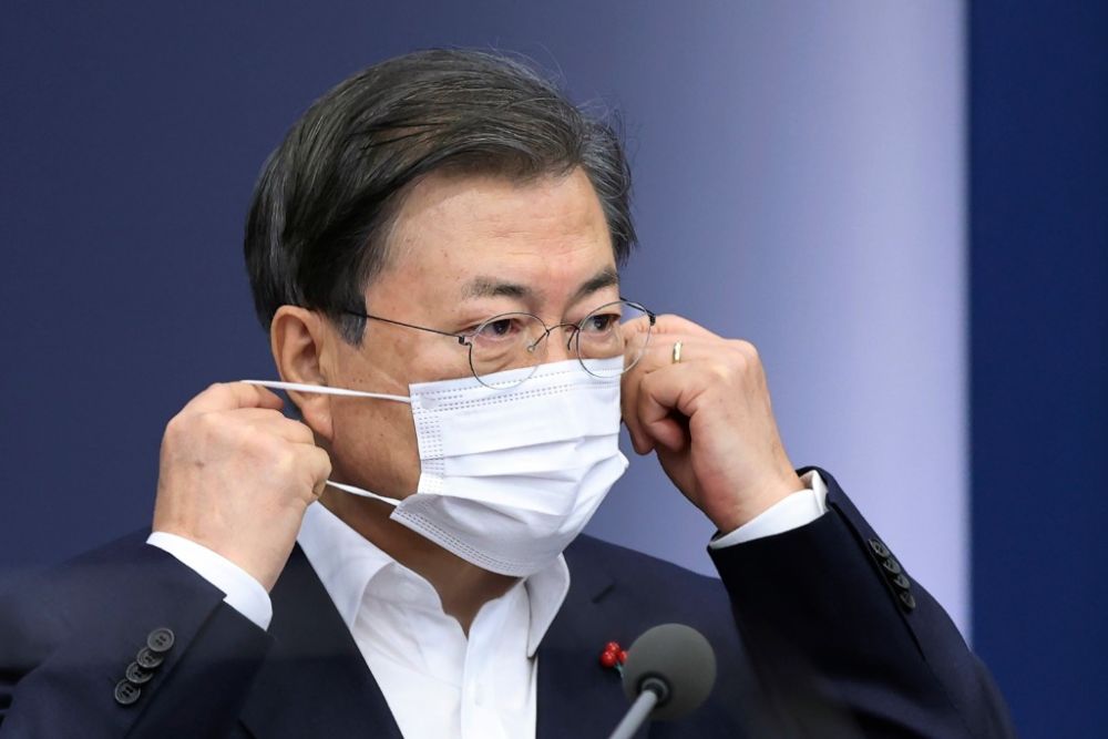12月7日,韩国总统文在寅在首尔青瓦台准备主持会议。新冠疫情近期在韩国再次出现反弹且持续扩散。韩国总统文在寅12月7日要求扩大病毒检测和流行病学调查追踪项目,出动军警与公务员以增加人力投入,特别是在病例显著增加的首都首尔及周边地区。(新华社/美联)