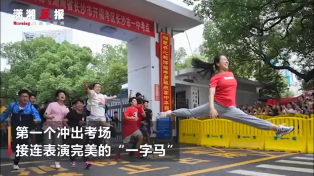 第一个冲出考场的女孩,开心到劈叉表演“一字马”。