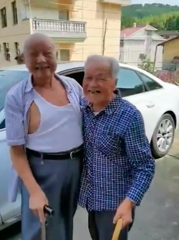 隔着小小的车窗,老人一眼认出15年未见战友,两个人开心又激动,一路小跑紧紧相拥。