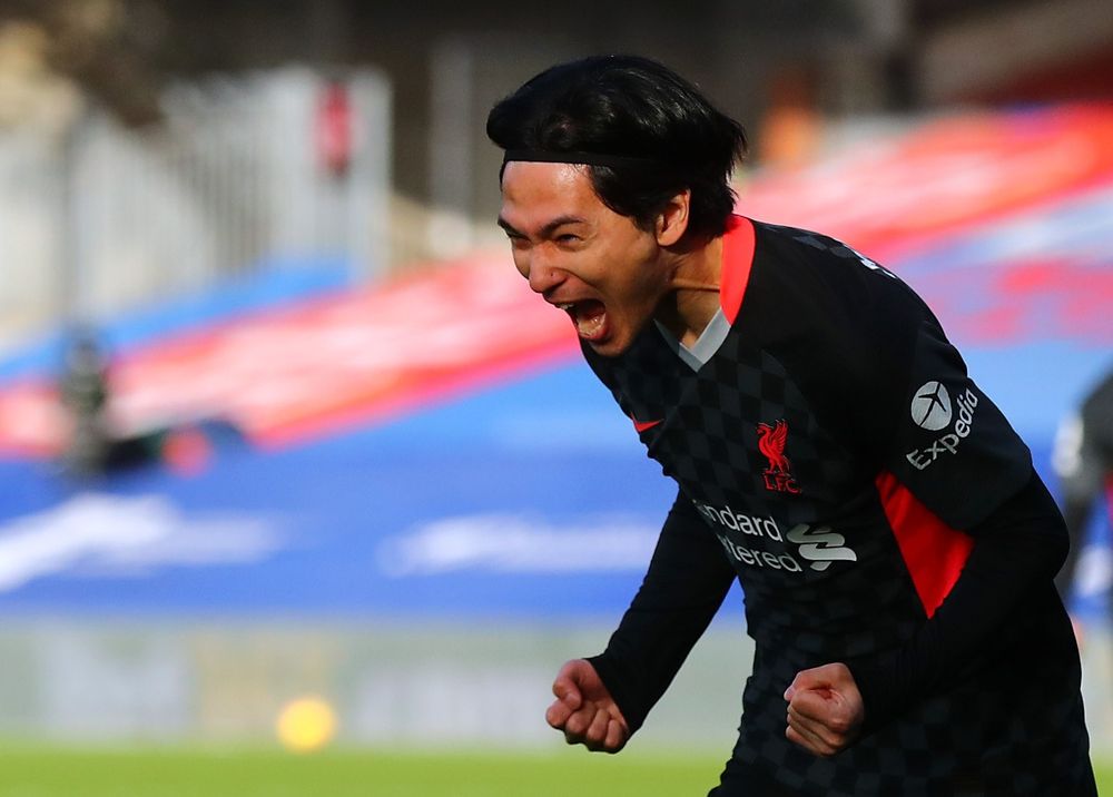 图为利物浦队球员南野拓实在打进本队首粒进球后庆祝。新华社/路透