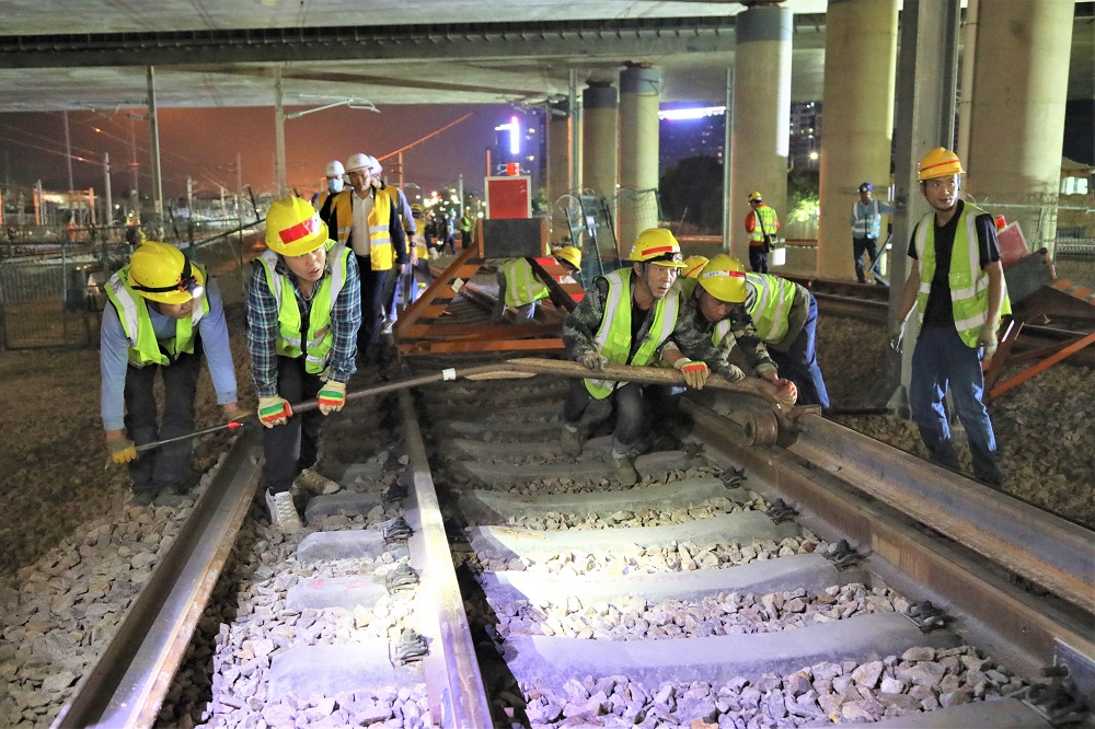 为了不影响春运、暑运、国庆、五一等节假日铁路运输,保证既有广深港高铁和厦深高铁的运营安全,深圳北站改造施工在工期范围内只能利用2019年和2020年十一和元旦之间没有列车运行的深夜时分进行。近千名建设者克服土建、接触网、轨道、信号等多工序同时交叉作业的难题,在子夜至凌晨4个小时“天窗点”对无砟轨道拆铺、信号、四电等进行升级改造,施工天窗点的每一夜都是一场千人“大拨接”“大会战”,确保了站改工程如期完工。