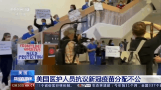 据美国广播公司报道,健康中心里的医护人员经常需要在急诊室、重症监护病房救治新冠肺炎患者,但许多奋战在一线的医护人员却惊讶地发现自己不在首批接种疫苗的名单中,而一些不直接接触患者的医生却可以优先接种疫苗,为此这些一线医护人员举行抗议。