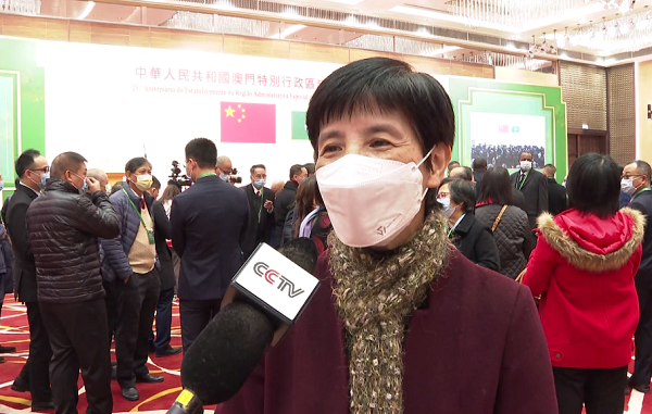 参加招待酒会的澳门各界人士也纷纷表达了他们对祖国和澳门未来发展的美好祝愿。“祝福我们祖国繁荣富强,也祝福我们澳门越来越好,走多元化发展的道路,使我们职工朋友的生活安居乐业,生活稳定。”澳门工会联合总会会长何雪卿表示。