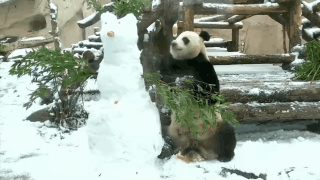这个白白的、有眼睛和鼻子的东西是什么呢?上面可有我最喜欢的胡萝卜,不管那么多了,先抓下来吃了再说。大熊猫“如意”对着雪人施展了一番拳脚,如愿将心爱的美食拿到手中。