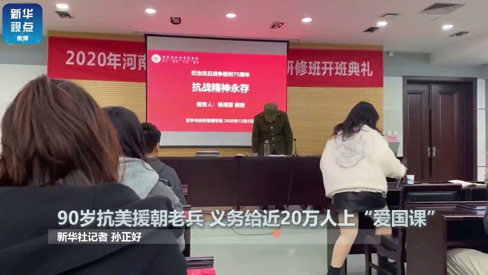 【#90岁抗美援朝老兵义务上爱国课# 愿我生命的钟摆定格在这三尺讲台上】杨清源是陕西师范大学的退休教师,今年90岁,1950年参军,曾在抗美援朝战场上奋勇杀敌。退休30年来,杨老师坚持义务给年轻人上“爱国课”,直接听众累计接近20万人次。致敬!(记者孙正好) 新华视点的微博视频