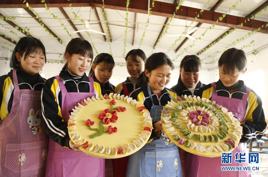 12月20日,河北省广宗县件只中学的学生们在展示创意饺子。