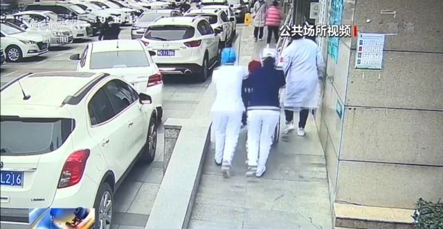 老人在等候公交车的过程中,不慎踩空摔倒。此时,正在医院门口为患者进行扫码登记的护士党王娟,听到呼救声后,立即上前查看。