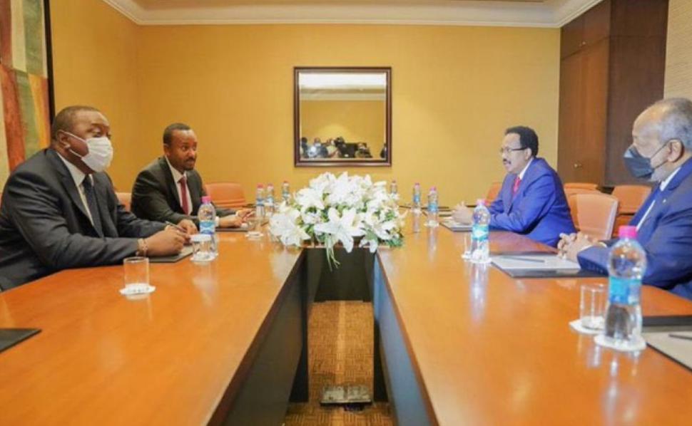 当地时间12月20日,两国总统出席在吉布提举行的东非政府间发展组织(伊加特)峰会。本次峰会将探讨非洲之角国家的安全和稳定。通过社交媒体流传的图片,可以看到两国元首进行了会面,现场还有埃塞俄比亚总理阿比等。目前,领导人们会谈的内容和细节,尚不清楚。不过,关于两国近期的外交争端,有望通过伊加特寻求调解。