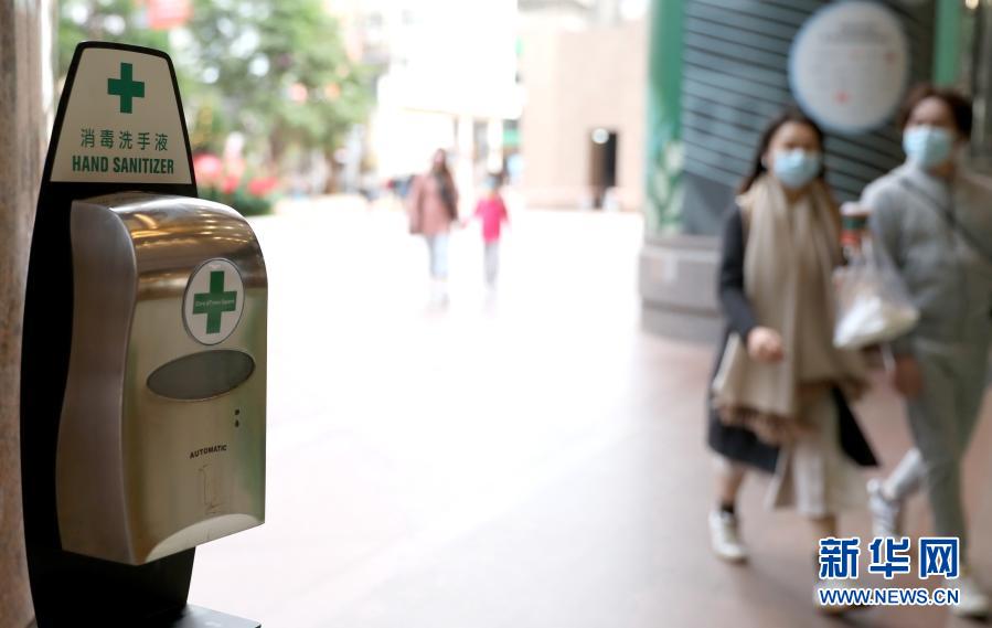 这是在香港街头拍摄的消毒设施(12月20日摄)。