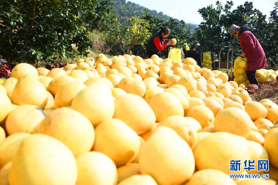 冬至临近,湖北省恩施土家族苗族自治州宣恩县的柚农抢抓晴好天气采摘贡水白柚,供应市场。贡水白柚是国家地理标志保护产品,当地种植面积达15万亩,覆盖8个乡镇82个村,村民们通过发展白柚产业实现脱贫增收。
