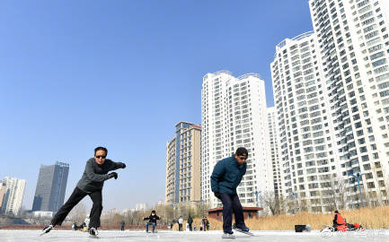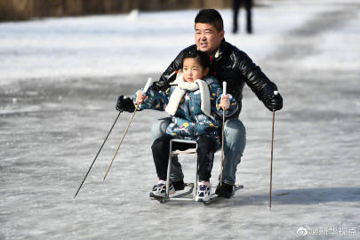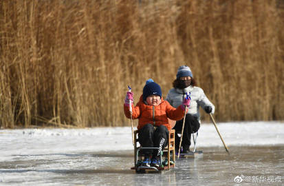 【全民健身——#乐享冰趣#】寒冬时节,青海省西宁市海湖湿地公园成为天然的滑冰场,公园管理部门加强了安全防护,吸引了不少市民体验滑冰、冰车等冰上运动。