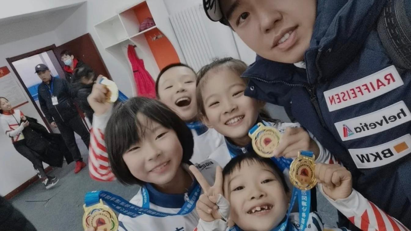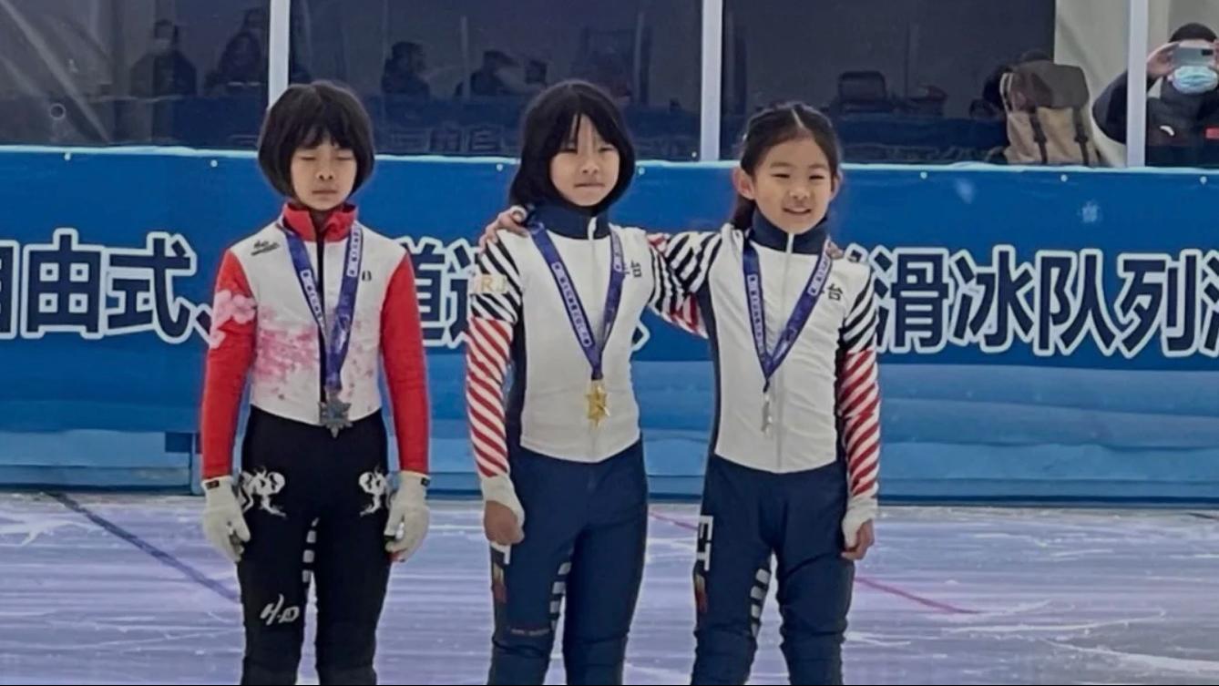 2020—2021年度北京市青少年短道速滑联赛第一站,U8组500米四分之一决赛。发令枪响后马子惠刚刚出发就摔倒在冰面上,趴在冰面上的她没有犹豫,爬起来就追了上去,在家人和教练的鼓励声中,50米、40米、30米、20米……直道连超两人,盯住了前面最后一个人的背影,一米米的咬住,成功弯道超越……