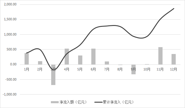 今年以来北向资金净流入情况(截至12月18日)数据来源:同花顺